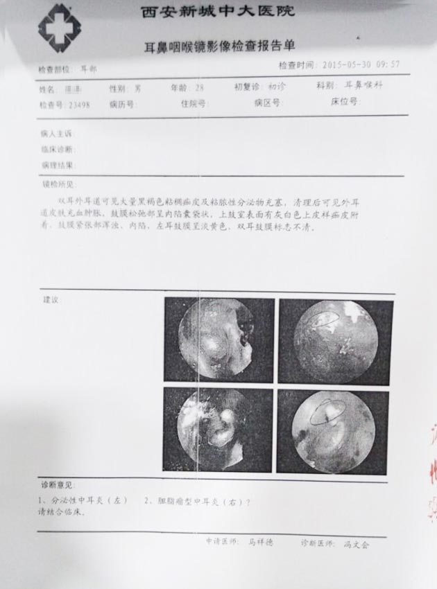 张全安教授表示:“患者有1年“中耳炎”病史,保守治疗不能好。这次运用“全安”系统疗法效果很好,医院引进的  目乐显微镜提高了手术质量及安全性,减轻了手术并发症,降低了术后复发率。随着该显微镜的投入使用,将极大提高我院的手术技术水平,目前  目乐显微镜已协助我完成了3000余例成功的手术。”