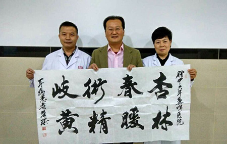 蔺先生呈感谢作品与主治医生合影留念