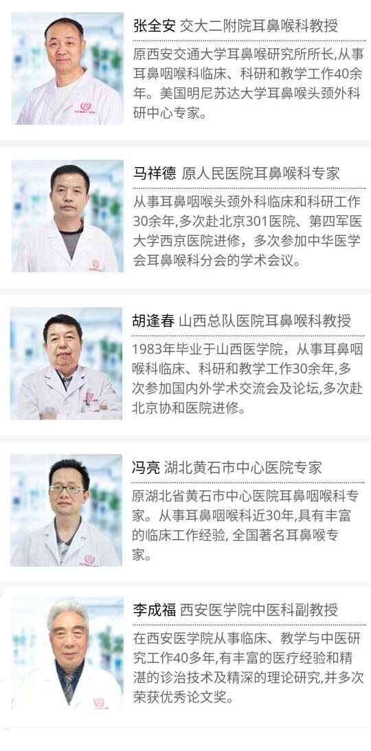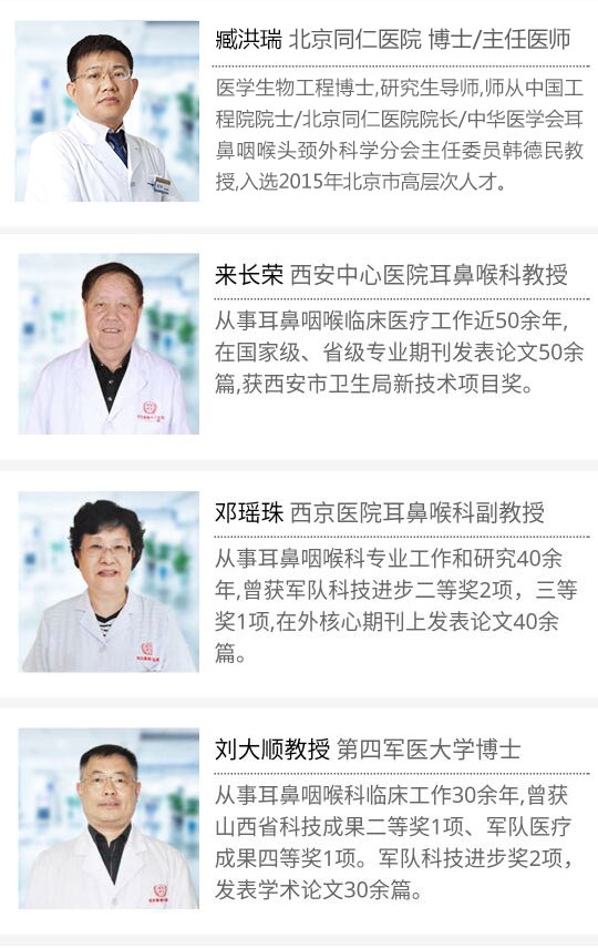 西安新城中大耳鼻喉医院特邀、、、西安市等多名在临床医学界有影响力的科主任级专家教授组成技术团队。