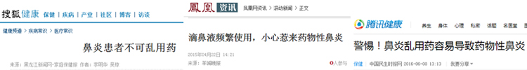 老病号们为图方便就喜欢用点自以为比较管用的药,喷一喷,滴一滴,吃两颗,效果立竿见影,但这其中隐藏的危害却鲜为人知。现在外面药店卖的鼻炎类药物、滴鼻液很多是处方药,药物中含有大量的抗生素,使用后患者会迅速感觉到鼻孔恢复通畅,但这类药物则会产生赖药性,一旦停药病情又会发作,甚至破坏鼻腔粘膜的结构和功能,导致病情加重不得不依靠手术才能解决过敏性鼻炎问题。